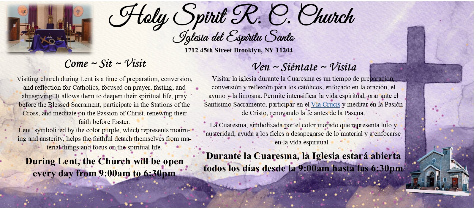 Regardless of where you are on your journey of faith, we hope you choose Holy Spirit Church as your spiritual home.